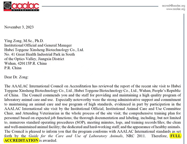 知,天勤鑫圣順利通過NMPA的GLP增項認(rèn)證(免疫原性)和國際AAALAC完
